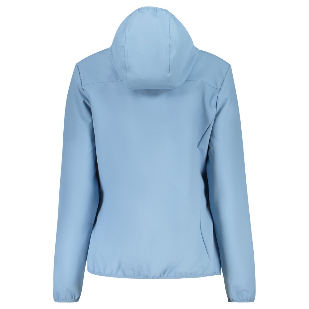 Pehmea kuorijakku pitkillä hihoilla ja hupulla, 2 ulkoista taskua, 2 sisäistä taskua, kontrastiväriset yksityiskohdat, vetoketju, applikaatio, logo