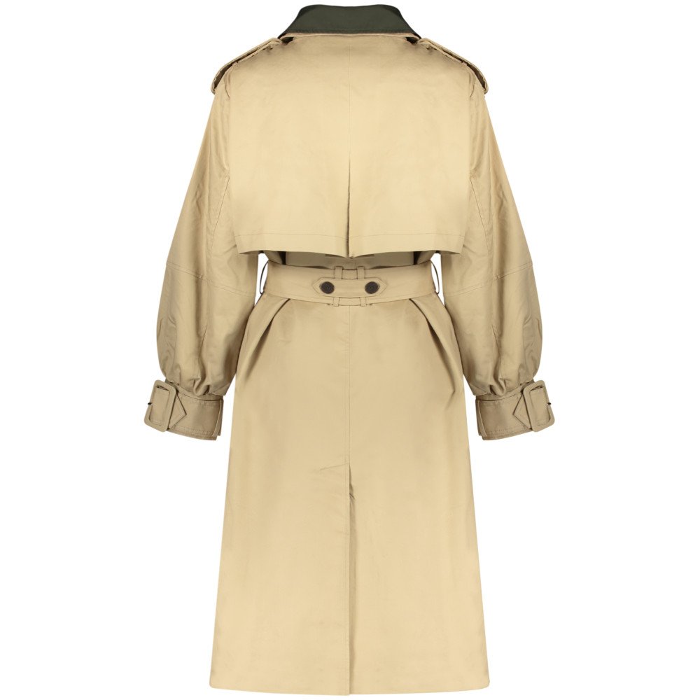 Kaksitoimeline eemaldatav trench, polo, 2 taskut, topeltrinn, nupud, eemaldatav vöö, puhvärvadega varrukad vööga, eemaldatav kahekordne värv, logo