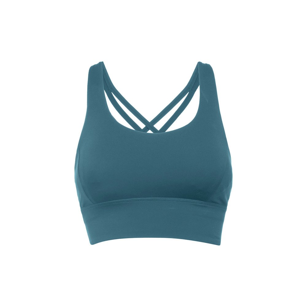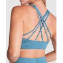 Hingavast materjalist tehniline topp naistele. Racerback disaini rihmad. Kõrge tugi.