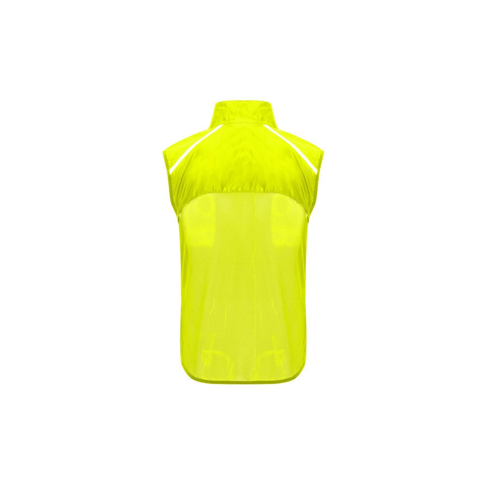 Ülikerge tuulepluusi vest. Parema hingavuse tagamiseks on esiküljel tuulekindel kangas ja tagaküljel võrk. Hea nähtavuse üksikasjad. Lõuakaitsega ühilduv eesmine tõmblukk. Elastne ääris käeaukudes ja allääres. Kokkupandav ja kandev elastse rihmaga tasku.
