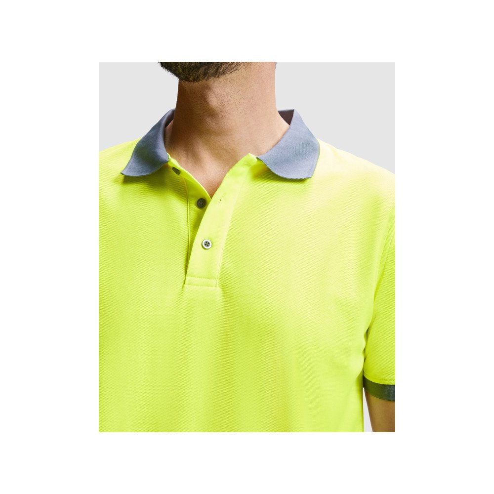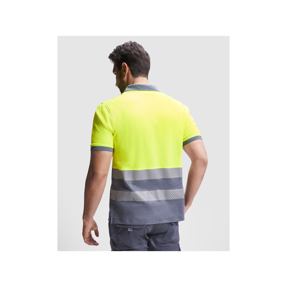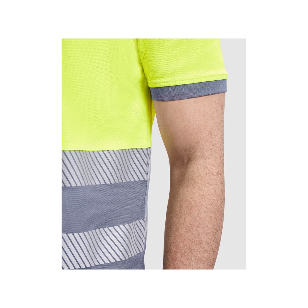 Lühikeste varrukatega tehniline kõrge nähtavusega polosärk.· 1x1 soonikuga krae.· Kontrastne 3 nööbiga plakk.· Kaks segmenditud kõrge nähtavusega riba rinnal.· Mugav polüestrist ja puuvillast segakangas parema hingavuse tagamiseks.· Valikuline tasku.