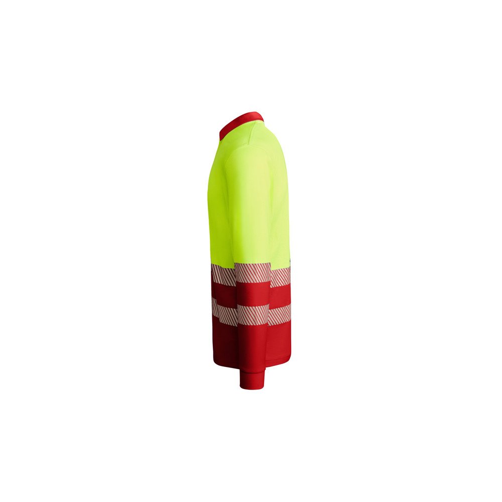 Pikkade varrukatega tehniline kõrge nähtavusega polosärk.· 1x1 soonikuga krae.· Kontrastne 3 nööbiga plakk.· Kaks segmenditud kõrgelt nähtavate ribade rindkere ja varrukad.· Mugav polüestrist ja puuvillast segakangas parema hingavuse tagamiseks.· Valikuline tasku.