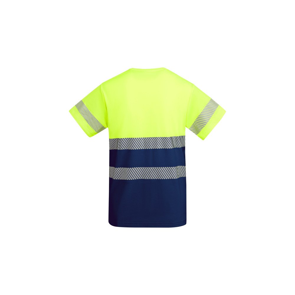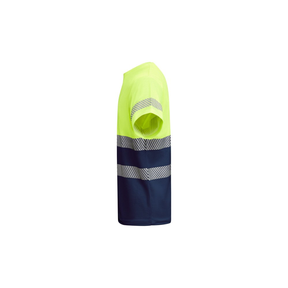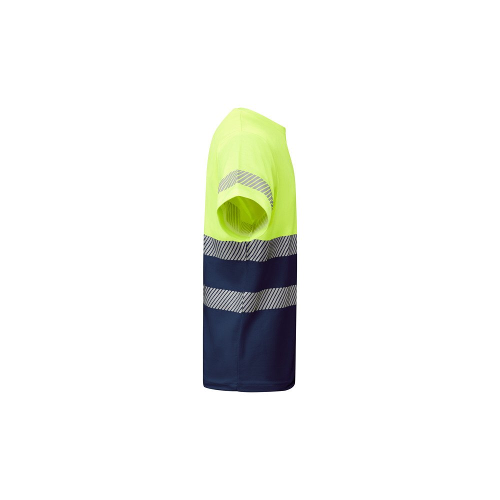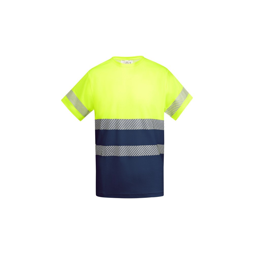 Techniniai gerai matomi marškinėliai trumpomis rankovėmis.· Įgulos kaklas iš pagrindinio audinio.Dvi segmentuotos gerai matomos juostelės ant krūtinės ir viena ant rankovių.Patogus mišrus audinys iš poliesterio ir medvilnės, užtikrinantis didesnį kvėpavimą.