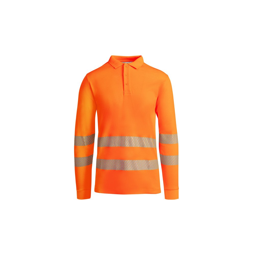 Techniniai aukšto matomumo ilgarankoviai polo marškinėliai vyrams su 1x1 briaunota apykakle. - Kontrastingas 3 sagų pledas.Dvi segmentuotos gerai matomos juostelės ant krūtinės ir viena ant rankovių. Patogus mišrus audinys iš poliesterio ir medvilnės, užtikrinantis didesnį kvėpavimą. · Papildoma kišenė.