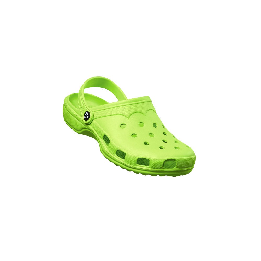 Patogios klumpės su orui pralaidžiomis angomis ir reguliuojamu kulno diržu.Daugiafunkcis modelis lauke ir maisto ar sveikatos sektoriaus darbuotojams, kurie daug valandų per dieną praleidžia stovėdami.
