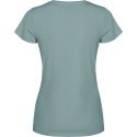 Women's short-sleeve t-shirt, 100% cotton with an acid-wash finish. 1x1 ribbed crew neck and side seams. Tone-on-tone coverstitch at the neck.