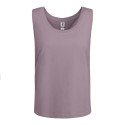 Laisvi marškinėliai moterims su plačiomis petnešomis. 1x1 briaunuota iškirptė ir rankų skylutės. Apvalios formos puspaltis. Šoninės siūlės.