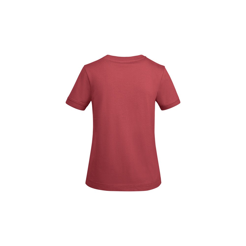 Stori marškinėliai trumpomis rankovėmis moterims iš medvilnės. Platus 2x1 briaunuotas ekipažo kaklo ir rankovių apvadas. Sustiprintos dengtos apykaklės siūlės. Šoninės siūlės. Atitinkantis „Roly“ logotipas kairėje pusėje. Plati siūlė ant šonų.