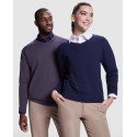 Smulkiai megztas V formos kaklo džemperis moterims. Suderinama su 1x1 briaunuotu kaklu, rankogaliais ir apvadu.