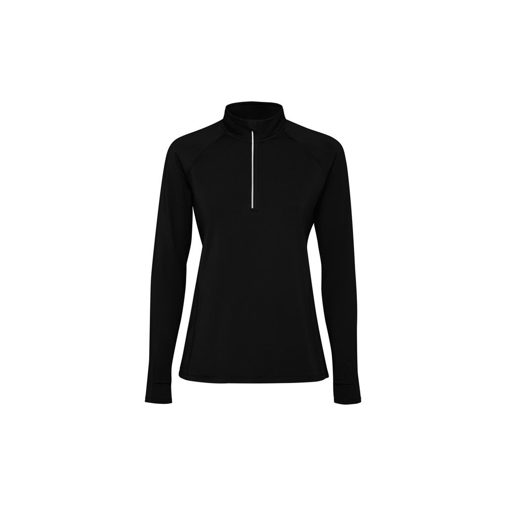 Moteriškas sportinis reglano stiliaus priglundantis džemperis su ilgomis rankovėmis. Apykaklė su nepilnu paslėptu užtrauktuku bei atspindinčiomis detalėmis. Sustiprintos siūles paslepiančios juostelės. Rankogaliai su angomis nykščiams. Ant nugaros esančios atspindinčios detalės. Užpakalinis apvadas yra šiek tiek ilgesnis už priekinį. Šiltas pūkuotas vidinis audinys.