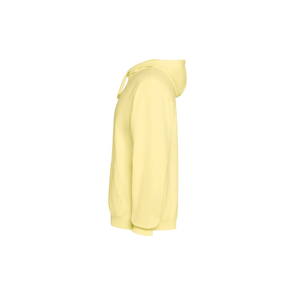 Unisex sweatshirt with tone-on-tone lined hood, 100% cotton with acid washed finish. Cuffs and hem in 2x1 rib. Matching flat drawstring. Collar with tone-on-tone seam cover. Kangaroo pocket.