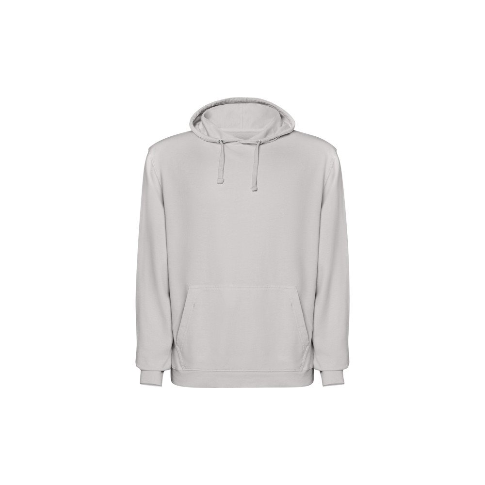 Unisex sweatshirt with tone-on-tone lined hood, 100% cotton with acid washed finish. Cuffs and hem in 2x1 rib. Matching flat drawstring. Collar with tone-on-tone seam cover. Kangaroo pocket.