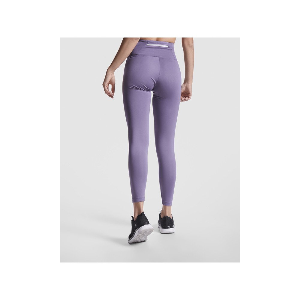 Sportinės tamprės iki kulkšnių su aukštu liemeniu. Nugarinėje kišenėje juosmens juosta su gerai matoma juostele. Gabalėlis ant vidinio pakilimo kryželio. Derantys apsiūti kraštai ant juosmens juostos. Gerai matomas „Roly“ logotipas ant juosmens šono.