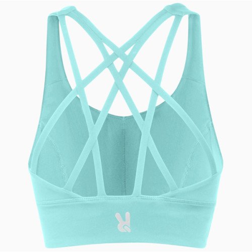 Techninis viršus moterims iš kvėpuojančio audinio. Racerback dizaino dirželiai. Didelis palaikymas.