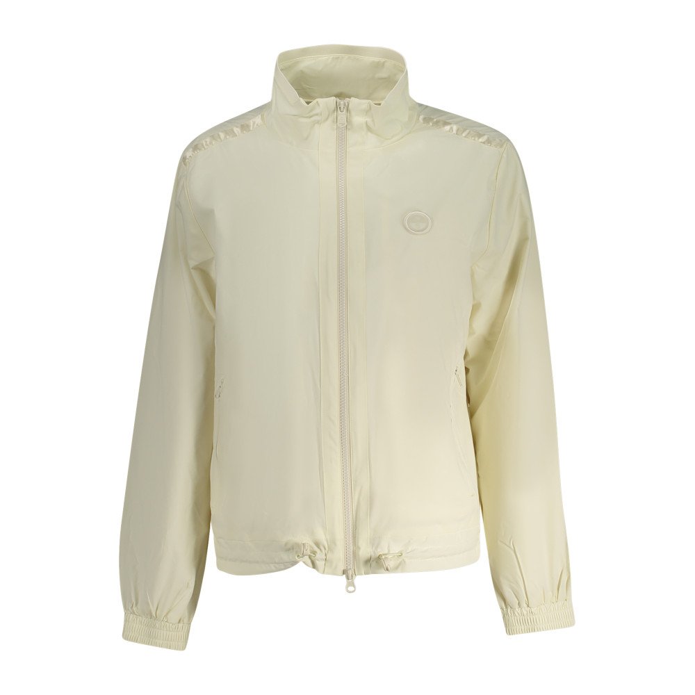 Ilgų rankovių striukė, 2 išoriniai kišeniai, 1 vidinis kišenė, užtrauktukas, kontrastingi detalės, aplikacija, logotipas