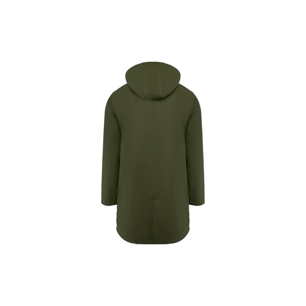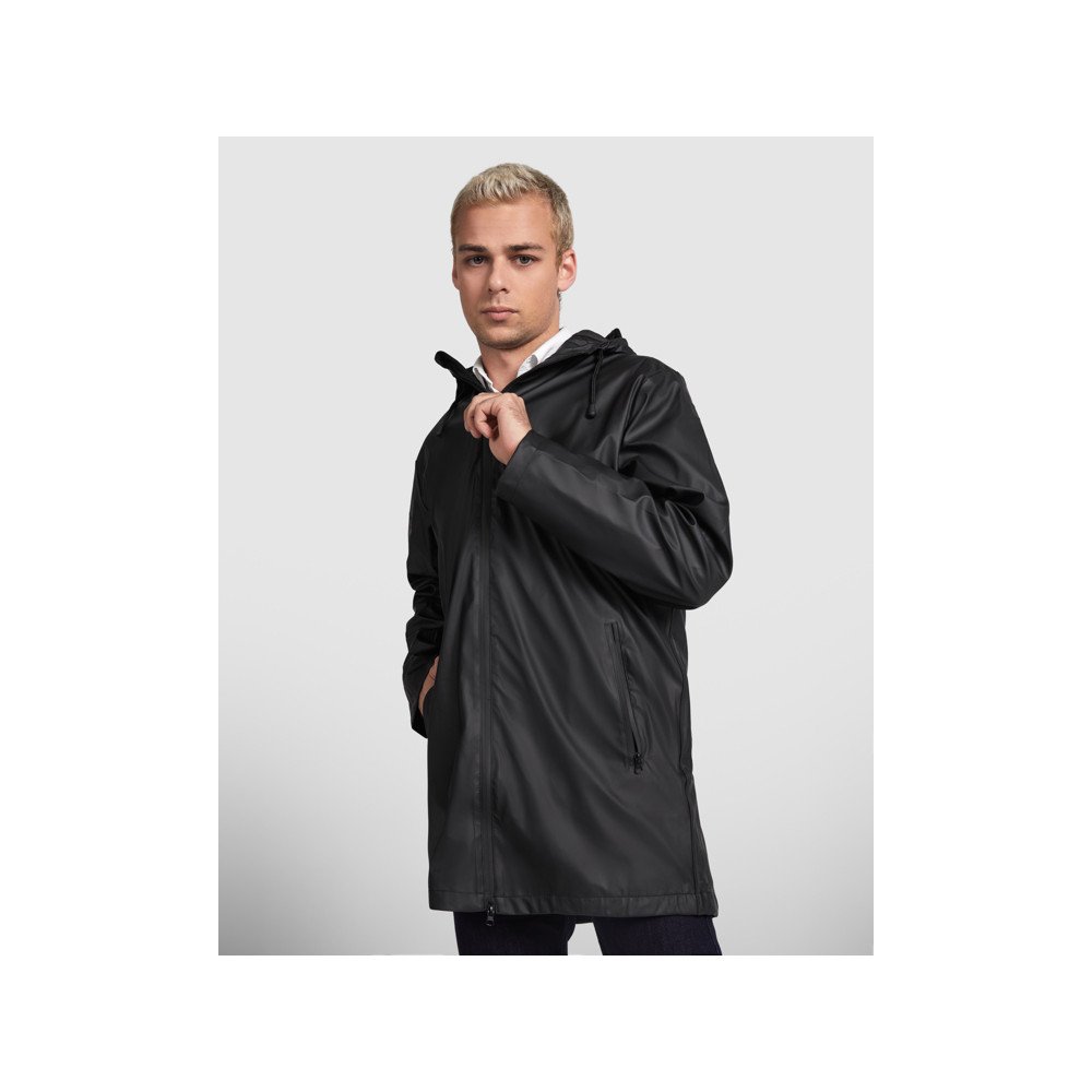 Neperšlampamas lietpaltis.Gobtuvas su smailia viršune.Šiluminiu būdu užsandarinti užtrauktukai ir siūlės. · Kontrastingos detalės juodos spalvos.Dvi šoninės kišenės su užtrauktuku.Plyšys ant nugaros hem.