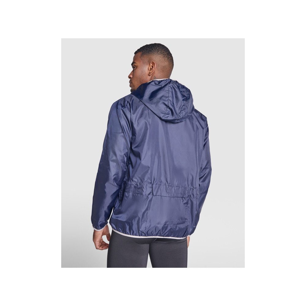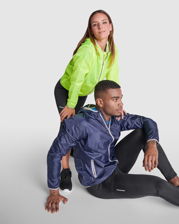 Unisex vėjalentė su gaubtu. Centrinis užtrauktukas su kontrastine smakro apsauga ir užtrauktuko galvutės liežuvėliu. Šoninės kišenės su kontrastingais gerai matomais užtrauktukais. Kengūrinė kišenė su velcro užsegimu ant nugaros, skirta sulankstyti drabužį.Gaubtas, rankogaliai ir apvadas su kontrastinga elastine apdaila. Vidinis gaubtas tinkliniu pamušalu ir dengtos siūlės.