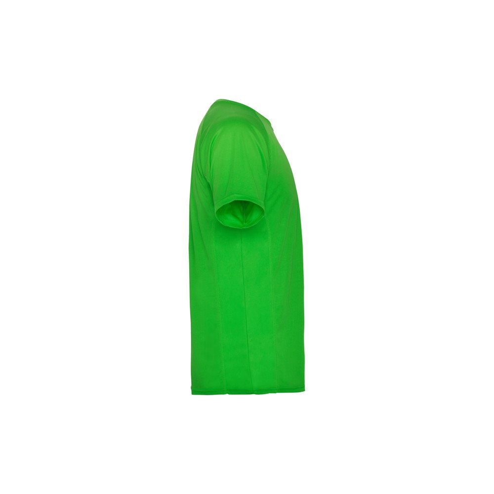 Sportiniai reglano stiliaus marškinėliai su trumpomis rankovėmis. Apvali kaklo iškirptė su derančiomis dengtomis siūlėmis. Derančios apsiūtos dalys ant rankovių ir šonų.