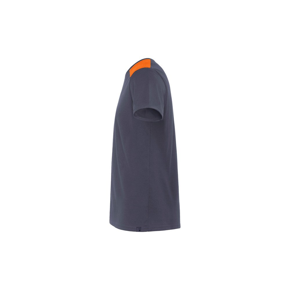 Spalvų derinio marškinėliai trumpomis rankovėmis. · Apykaklė padengta kontrastingomis vidinėmis siūlėmis.· Šoninės siūlės.· Kontrastingi pečiai ir detalės.