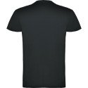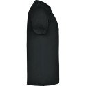 Marškinėliai trumpomis rankovėmis su dviejų sluoksnių įgulos kaklu iš elastano, pagaminti iš vamzdinio audinio suaugusiems. *Šoninės siūlės vaikams. Sustiprintos dengtos apykaklės siūlės.