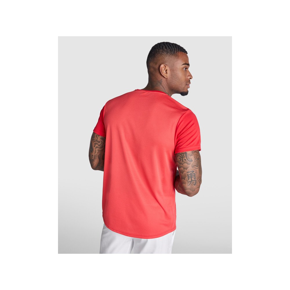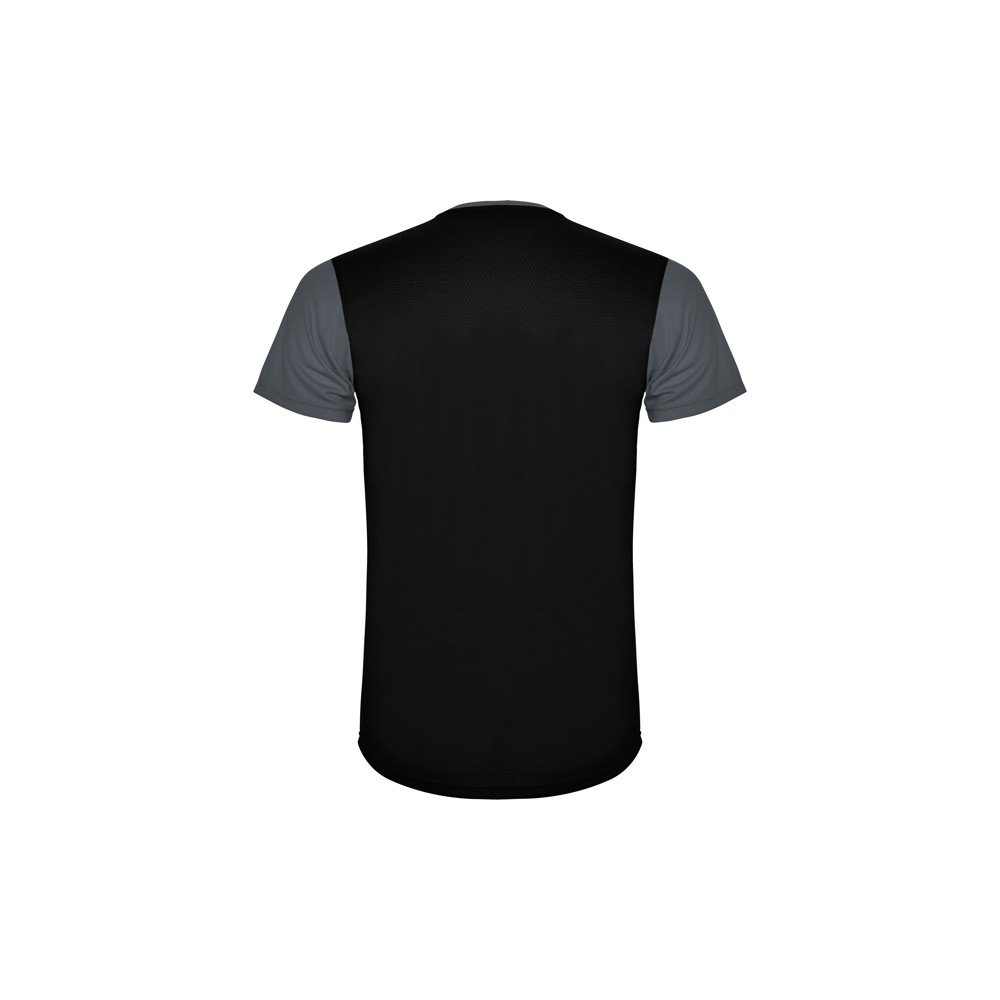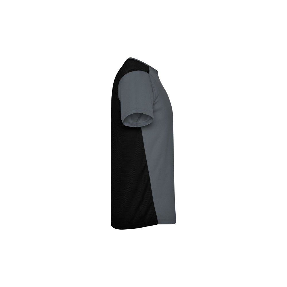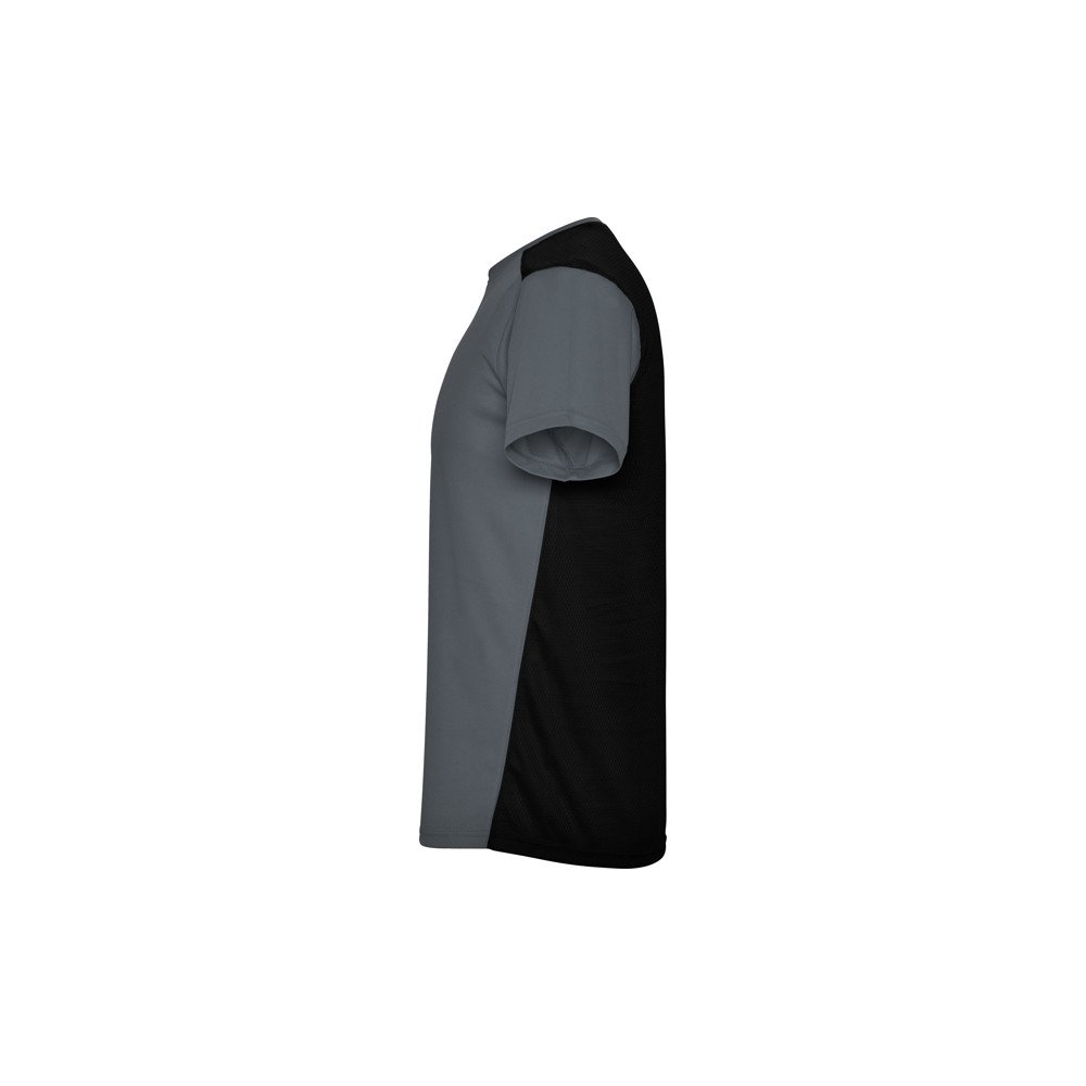Orui pralaidūs trumparankoviai techniniai marškinėliai. Priekis ant lengvai išdžiūvusio audinio ir kvėpuojančio 3D tinklinio audinio gale, paruošto drėgmės sugėrimui. Kontrastingos overlokuotos siūlės. Užpakalinis apvadas yra šiek tiek ilgesnis už priekinį.