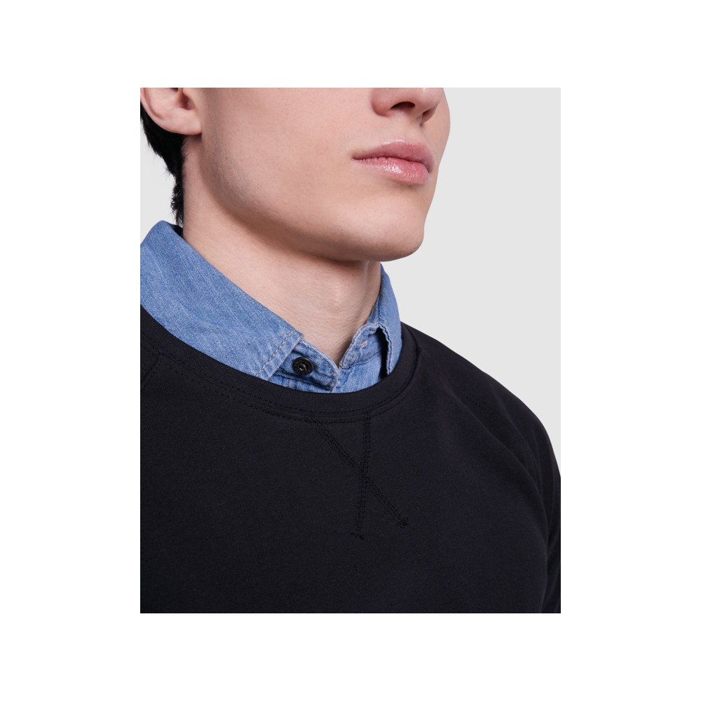 Raglan stiliaus džemperis.1x1 šonkaulis su apykakle, rankogaliais ir apvadu.Įgulos kaklas su sukryžiuoto susiuvimo detalėmis ir sutvirtintomis dengtomis siūlėmis apykaklės viduje.