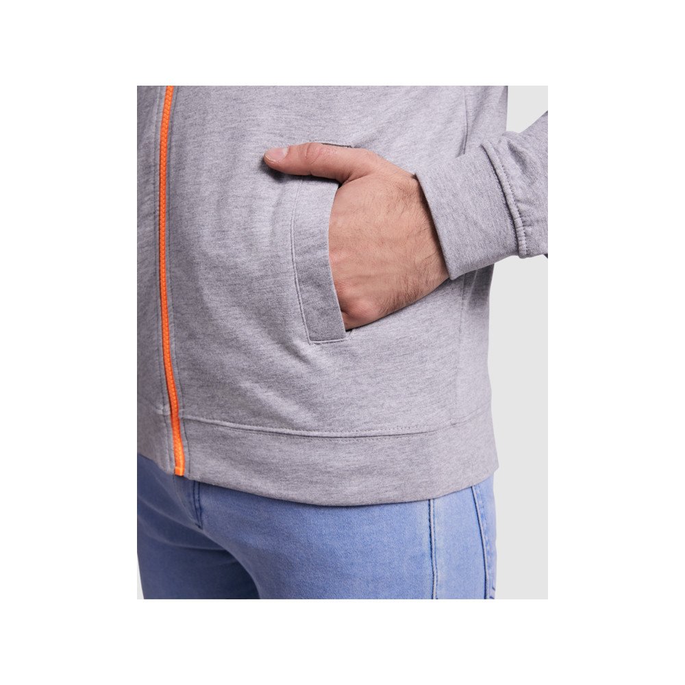 Švarkas su prakaitu iš nešukuotos vilnos su gobtuvu. Centrinis užtrauktukas, gobtuvo pamušalas ir kontrastingos ryškios spalvos reguliuojamas raištelis. 1x1 stulpelis ant rankogalių ir juosmens. · Dvi priekinės kišenės.Sustiprintos ir padengtos vidinės apykaklės siūlės.