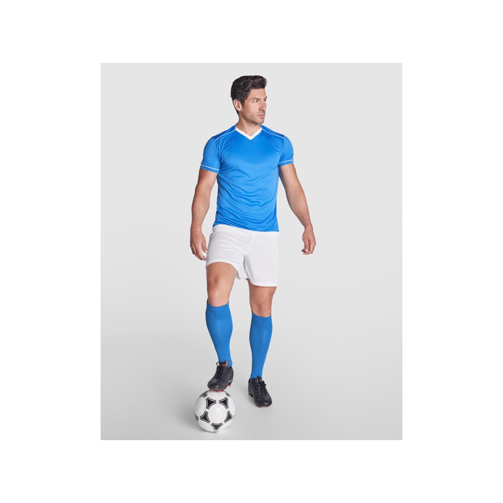 Dviejų dalių sportinis rinkinys iš orui laidaus audinio. „Unisex“. Dvispalviai V formos kaklo marškinėliai trumpomis rankovėmis. Vidinė sustiprinta padengta siūlė su kontrastingu apsiuvimu ant pečių. Kontrastingi šortai su tampriu juosmeniu ir vidiniu raišteliu.
