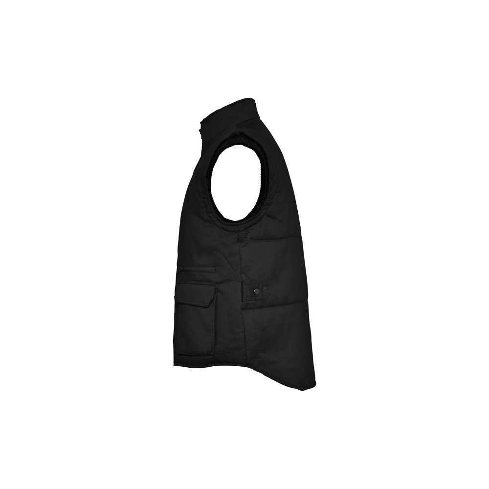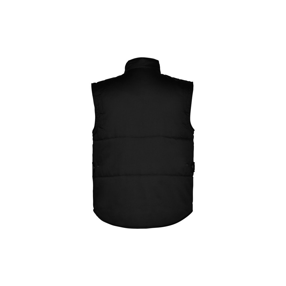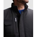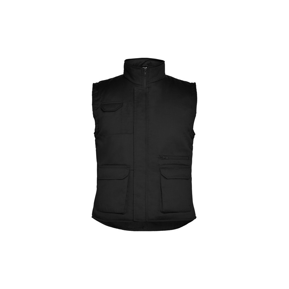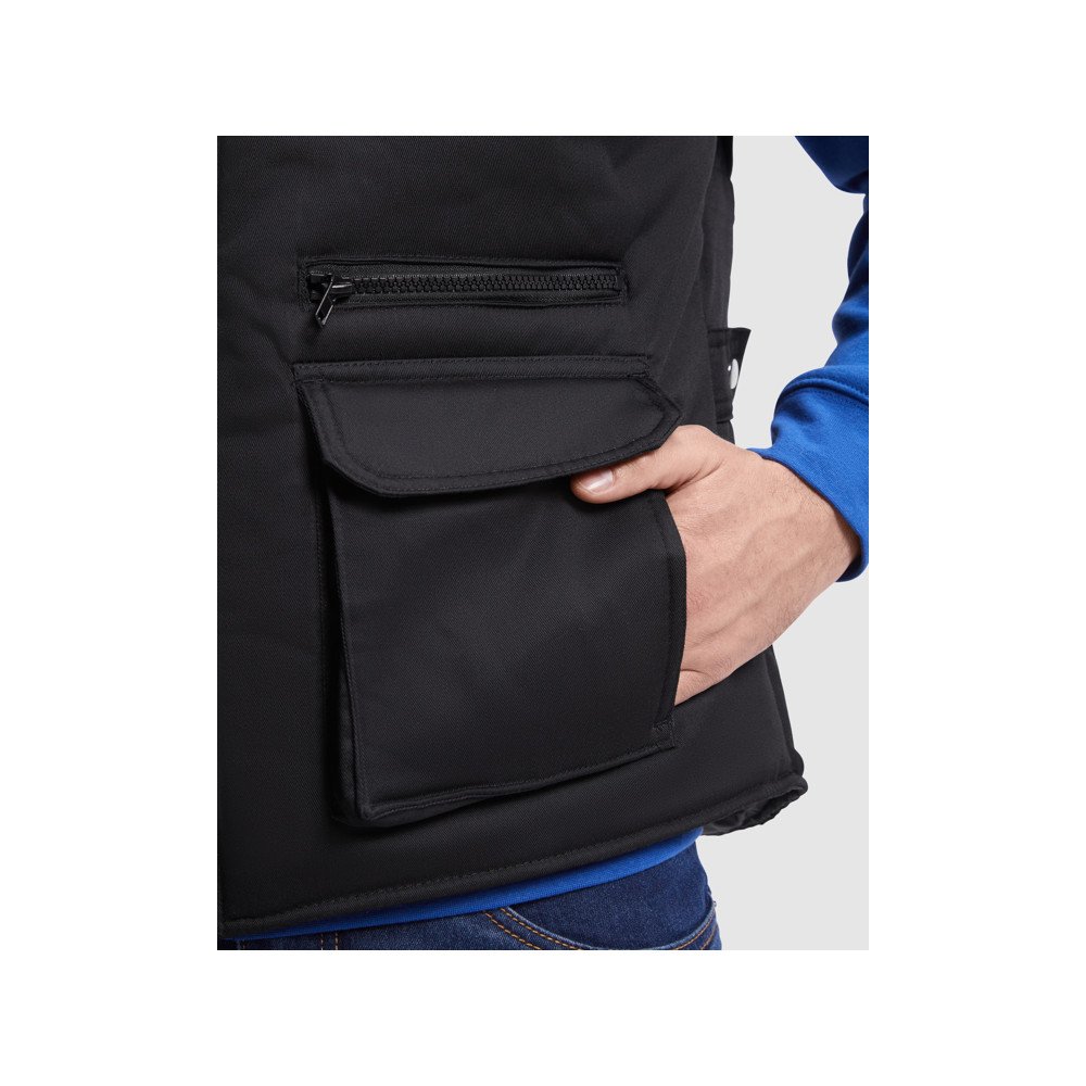 Universalus darbinis kūno šildytuvas su aukštu kaklu.· Priekinis užtrauktukas su dirželiu ir lipuku.· Viena išorinė kišenė dešinėje mobiliojo telefono pusėje. · Dvi priekinės kišenės su šoninėmis ventiliacijos angomis.· Dvi tušinuko kišenės.· Viena vidinė kišenė su lipuku.· Kišenė su užtrauktuku. · Vidinė kišenė su užtrauktuku.· Nuleistas galas.· Reguliatorius su savaiminio tvirtinimo įtaisu.