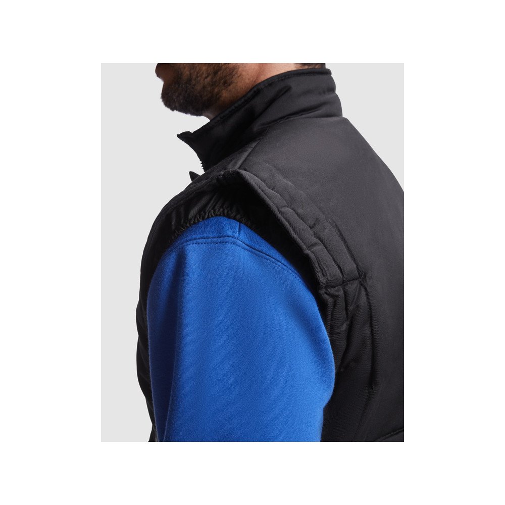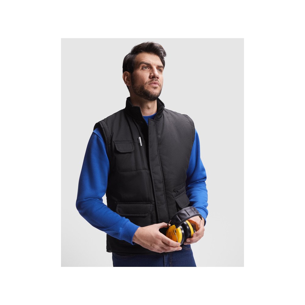 Universalus darbinis kūno šildytuvas su aukštu kaklu.· Priekinis užtrauktukas su dirželiu ir lipuku.· Viena išorinė kišenė dešinėje mobiliojo telefono pusėje. · Dvi priekinės kišenės su šoninėmis ventiliacijos angomis.· Dvi tušinuko kišenės.· Viena vidinė kišenė su lipuku.· Kišenė su užtrauktuku. · Vidinė kišenė su užtrauktuku.· Nuleistas galas.· Reguliatorius su savaiminio tvirtinimo įtaisu.