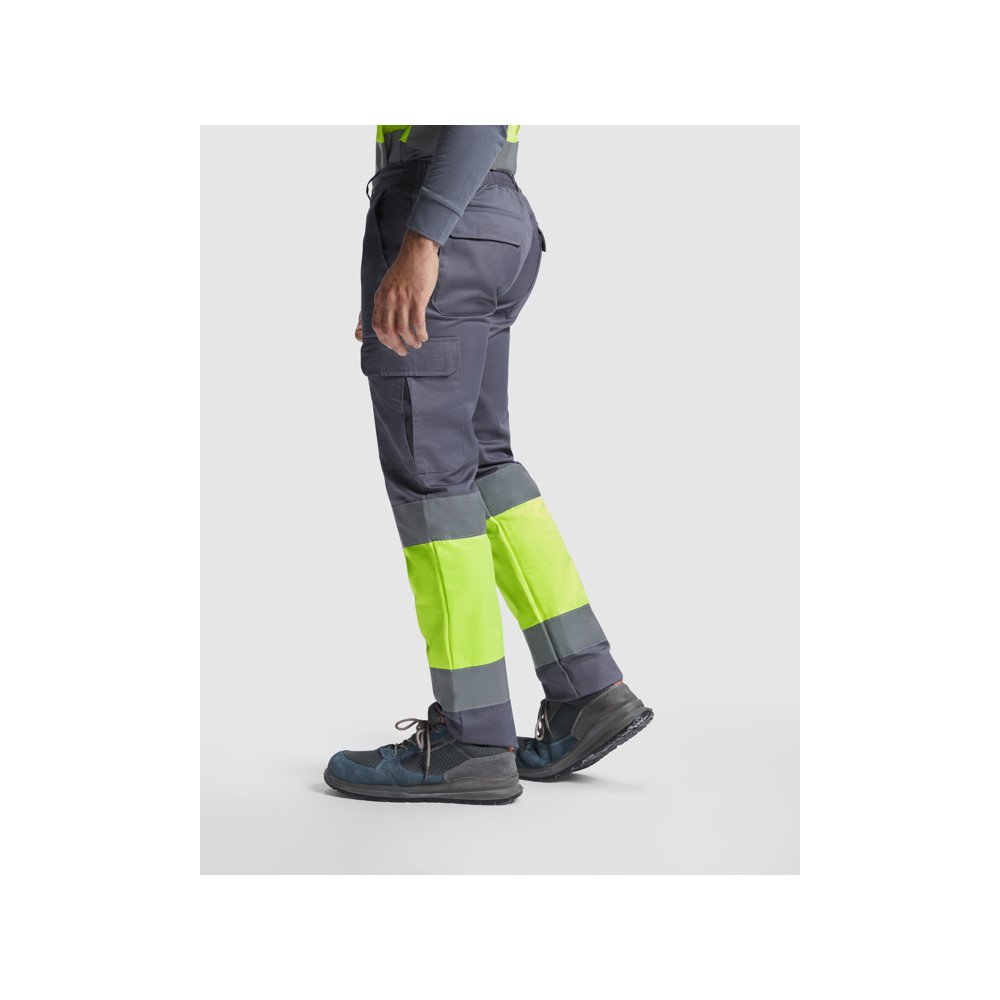 Bikses ar daudz kabatām, labi pamanāmas· Elastīga gumija jostasvietā aizmugurē· Divas kabatas aizmugurē ar velcro stiprinājumiem· Divas kabatas priekšā un divas sānos ar velcro stiprinājumiem· Kombinēts divāskrāsās ar atstarojošām joslām· Divas sānu daļas ventilācijai