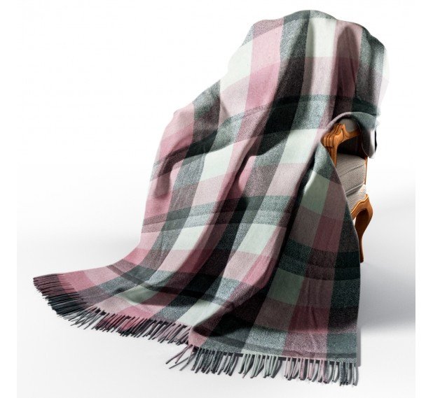 Vilnas pleds baltā, rozā un dūmakaini rūtainā rakstā