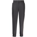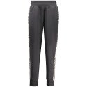Bikses ar elastīgu jostasvietu, divām kabatām, potīšu aprocēm, kontrastējošiem elementiem, strasu aplikāciju un logotipu.
