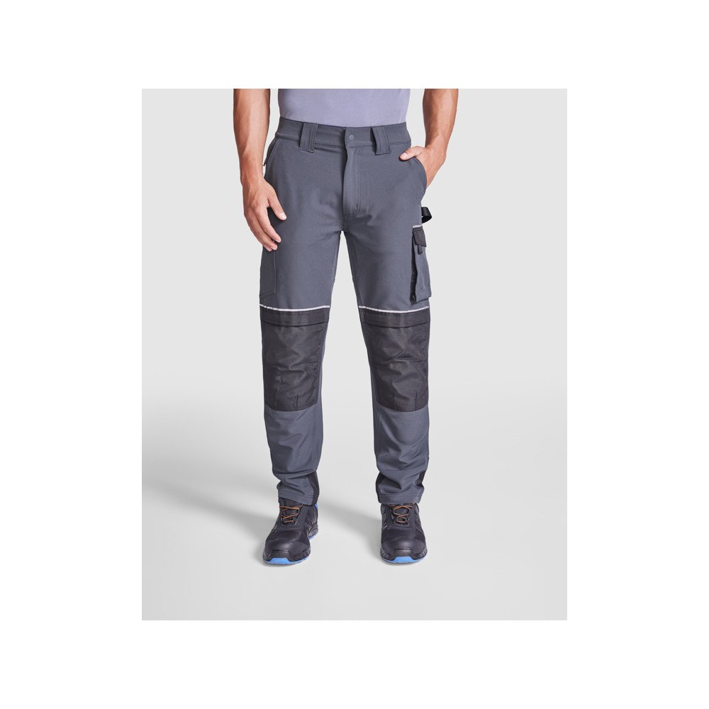 Daudzkabatu elastīgās darba bikses.· Josta ar divām priekšējām un trim aizmugurējām jostas cilpām ar īpaša platuma centrālo jostas cilpu.· Rāvējslēdzēja aizdare un gumijota spiedpoga.· Divas priekšējās kabatas klasiskā griezumā, viena no tām ar sānu kabatu un rāvējslēdzēju.· Kravas kabata kreisajā pusē ar atloku, atstarojošu lenti un liplentes aizdari.· Kabata labajā pusē ar atstarojošu lenti un liplentes aizdari.· Ceļu polsterējuma kabata ar fiksētu atloku, atstarojošu lenti un liplentes aizdari.· Siksnas cilpa kreisajā pusē instrumentu uzglabāšanai.· Aizmugures jūga ar divām kabatām ar cauruļvadiem un apgrieztiem rāvējslēdzējiem.· Pastiprināta vīle un atstarojoša lente aizmugurē.· Trīskārša stiprinājuma šuve sānos un kājstarpe ar atbilstošu vītni.· Armatūra kājstarpes aizmugurē.