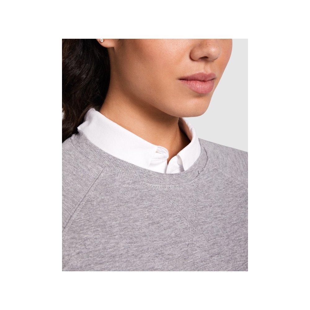 Kokvilnas sporta krekls ar garām piedurknēm reglāna stilā, 2x2 dubultrievains adījums uz apkakles, piedurknēm un uz vidukļa. Taisna griezuma kakla līnija ar stiegrojumu kakla zonas iekšpusē. Priekšpusē krusteniski izšūta detaļa ar 2x2 auduma pārklājumu.