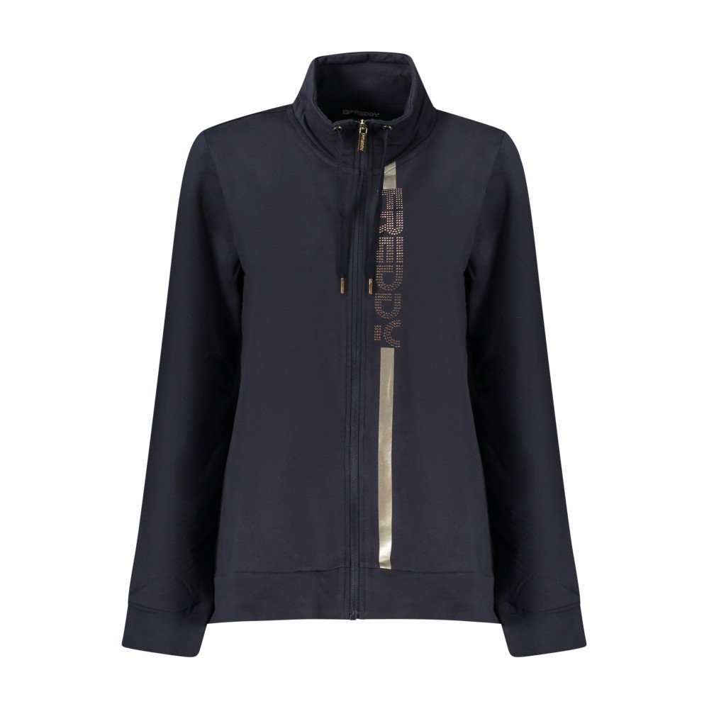 Hūdijs ar garām piedurknēm, džemperis, 2 kabatas, rāvējslēdzis, akmens aplikācija, logo