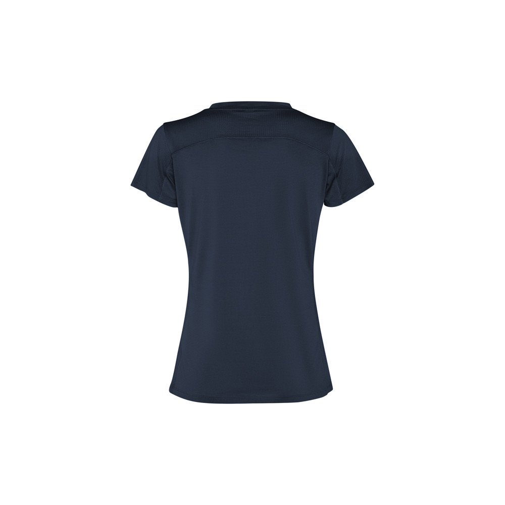 Sieviešu tehniskais t-krekls ar īsām piedurknēm. Viegls audums, kas izgatavots no pārstrādāta poliestera.· Apkakle ar sakrustotām detaļām un coverseams.· Aizmugurējā jūga un piedurknes no elpojoša auduma.· Priekšējās un slīpās šuves sānos un plecos.· Noapaļota vīle.· Apvienoti elpojošos un elastīgos audumos.