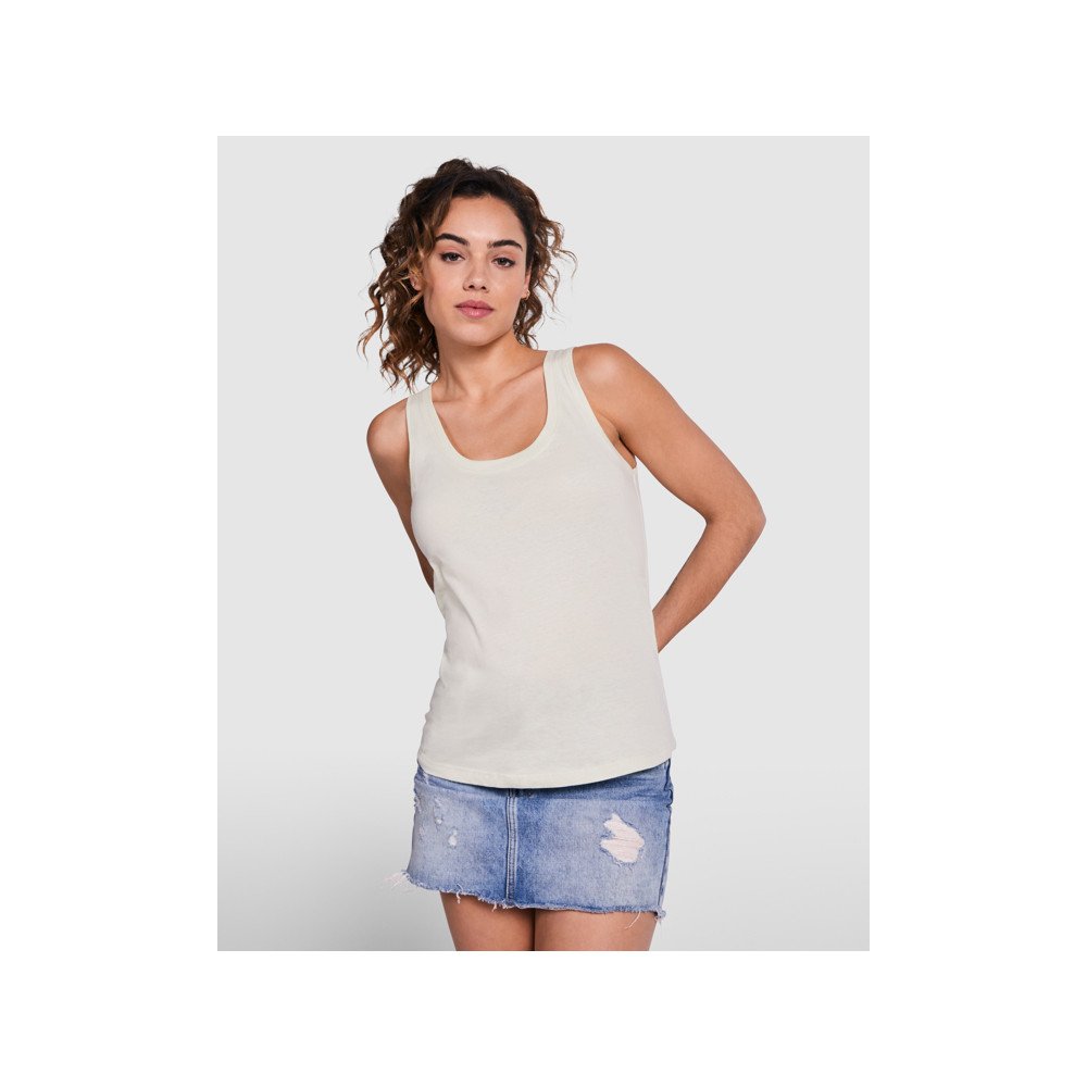 Vaļīgs t-krekls sievietēm ar platām lencēm. 1x1 rievots kakla izgriezums un roku caurumi. Apaļas formas apakšmala. Sānu vīles.
