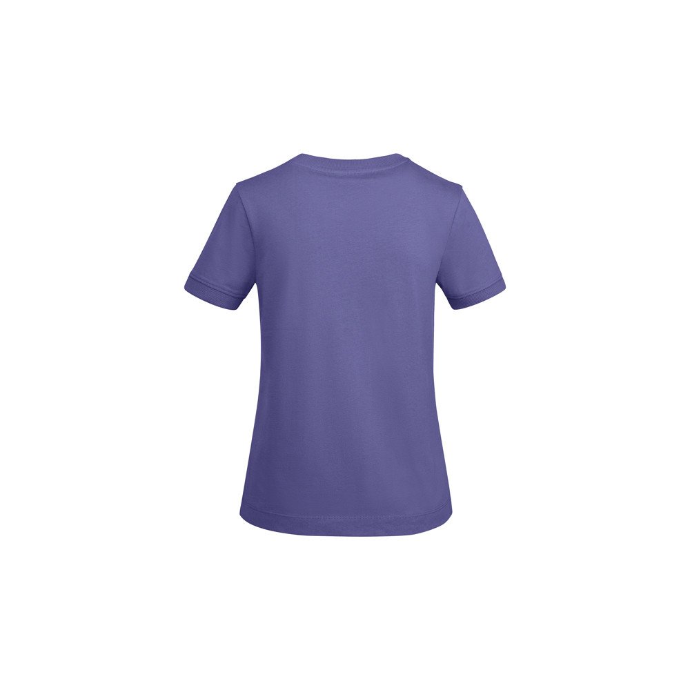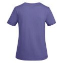 Biezs T-krekls ar īsām piedurknēm sievietēm no kokvilnas. Plata 2x1 rievota izgriezuma kakla un piedurkņu apmale. Pastiprinātas pārklātās šuves apkaklē. Sānu vīles. Atbilstošs Roly logotips kreisajā pusē uz apmales. Plata vīle uz apakšmalas.