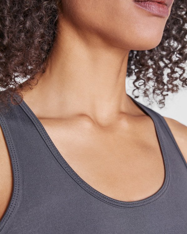 Sporta t-krekls ar peldēšanas stila muguru. Kokvilnas pārklājuma poliesters. Pieguļoša forma.