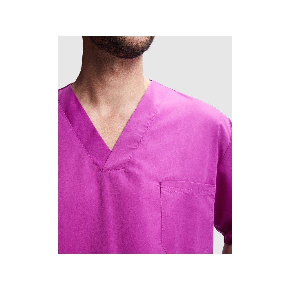 Unisex tehnisks tops ar īsām piedurknēm un izgriezumu. · Kabatas uz krūtīm un divas sānu kabatas. · Sānu atvērumi.