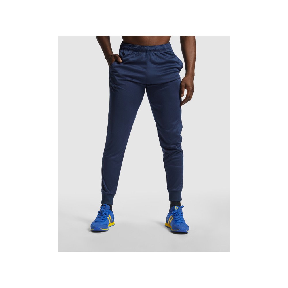 Garas treniņbikses ar elastīgu un regulējamu jostasvietu un iekšejo šnori. Sānu kabatas. Aproces un rāvējslēdzējs apakšā.