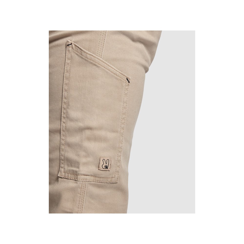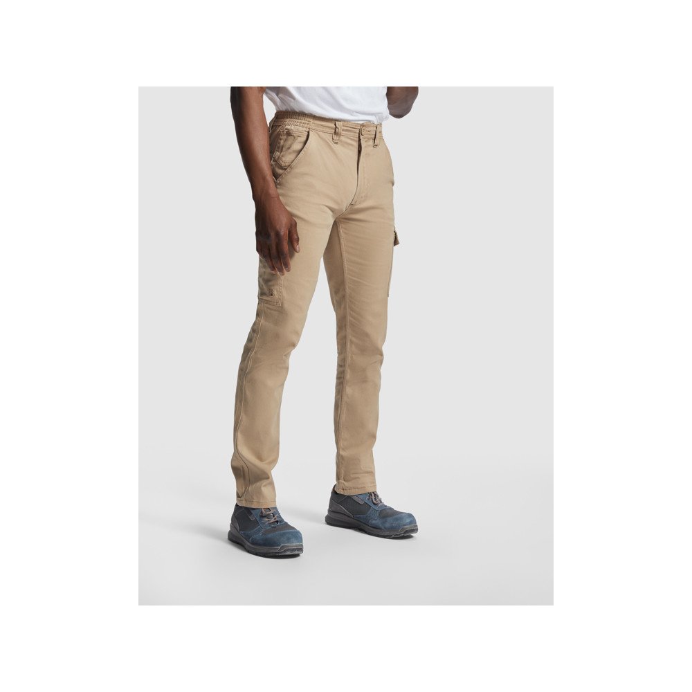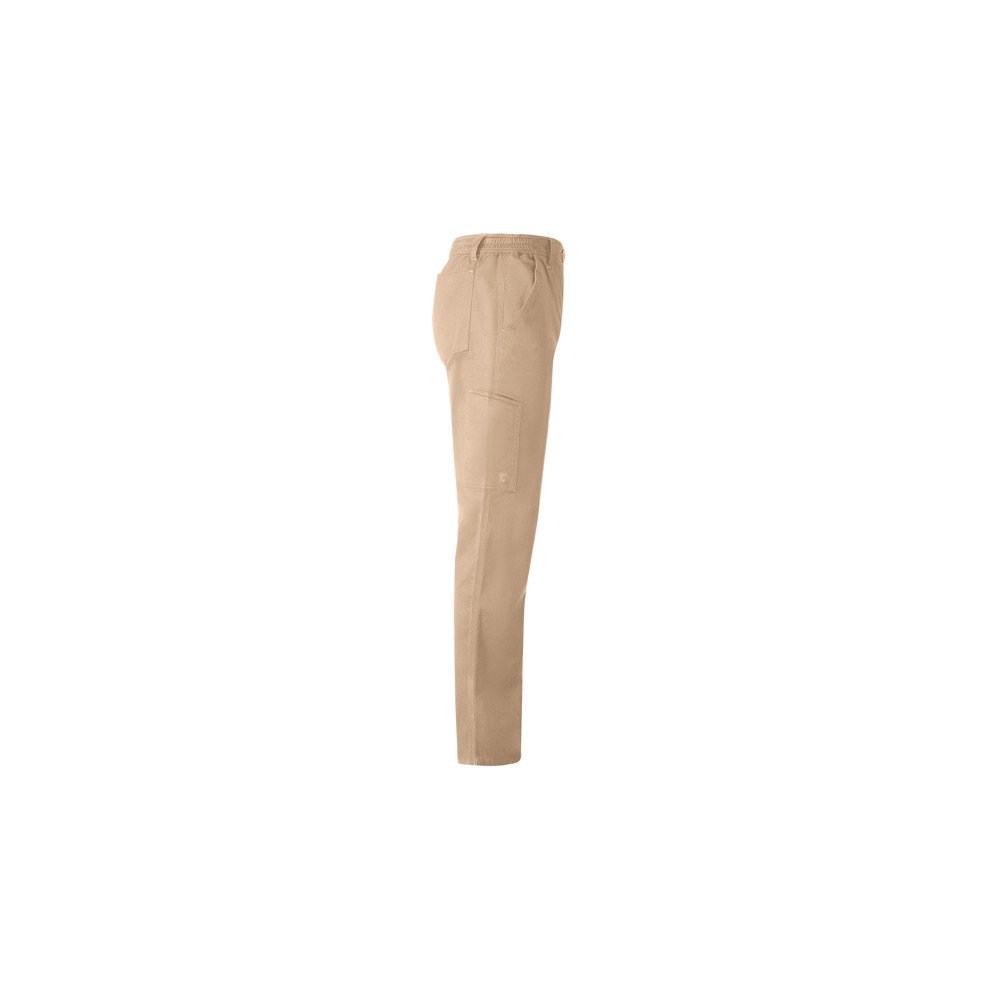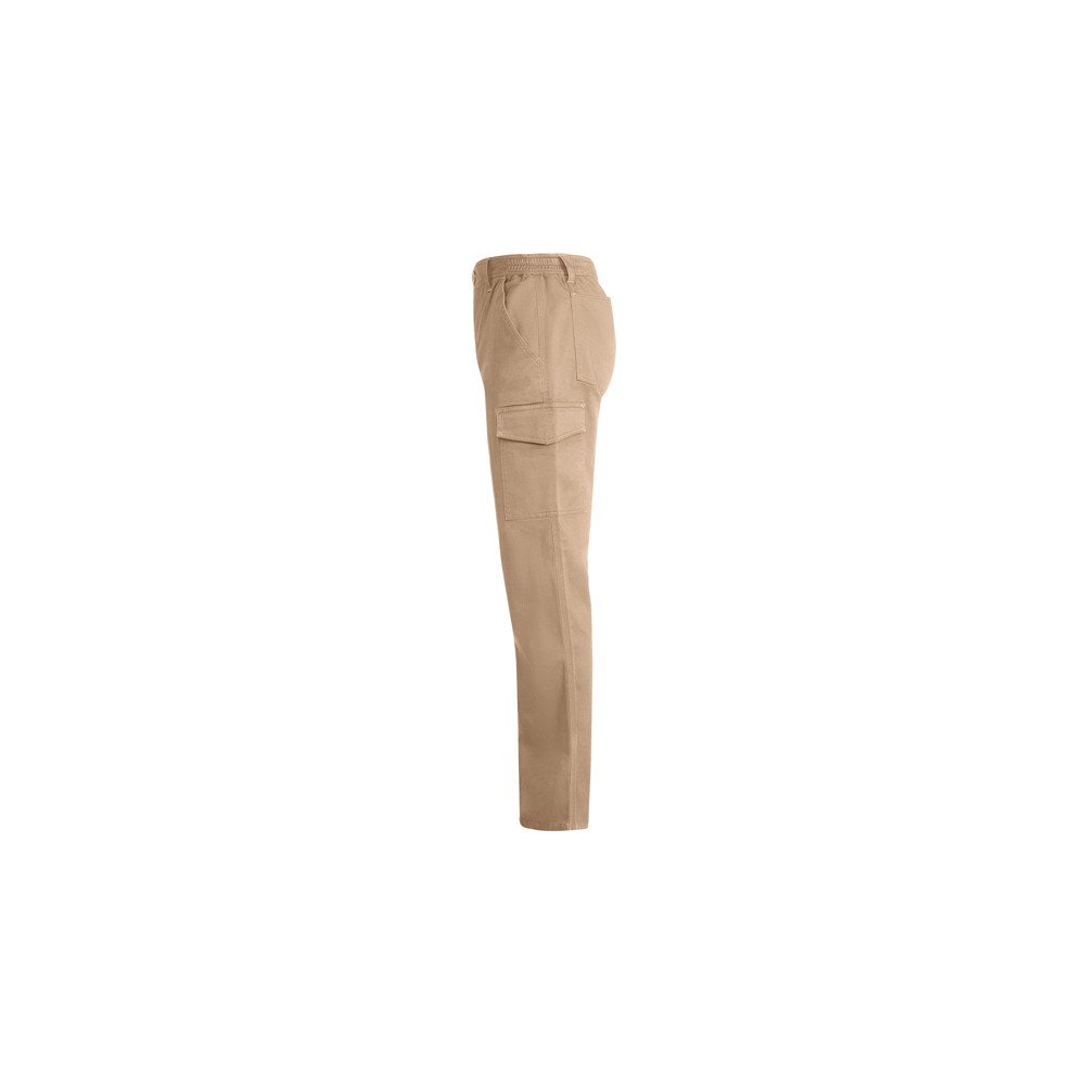 Biezas garās bikses ar elastānu.· Ērts un izturīgs audums.· Pastiprinātas trīskāršās vīles kājstarpē, iekšējā kājā un sānos.· Kontrastējošs šuvju apmalojums.· Regulējama elastīga jostasvieta sānos.· Divas priekšējās kabatas un viena monētām.· Divas funkcionālas aizmugurējās kabatas. Labais ar atloku un liplentes aizdari.· Divas funkcionālas sānu kabatas. Labā, kastes griešanas nazim. Kreisā ar atloku un liplentes aizdari.