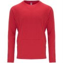 Ranglan stila krekls ar garām piedurknēm. 1x1 dubultrievains adījums apkakles aizmugurē un piedurkņu apakšējā daļā. Ķengura tipa kabata ar bezšuvju apdari. Diagonālas sānu vīles priekšpusē.