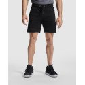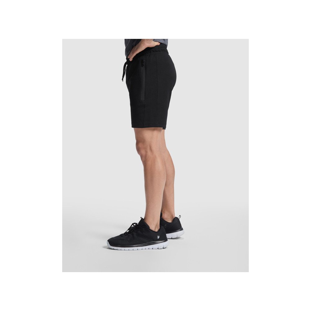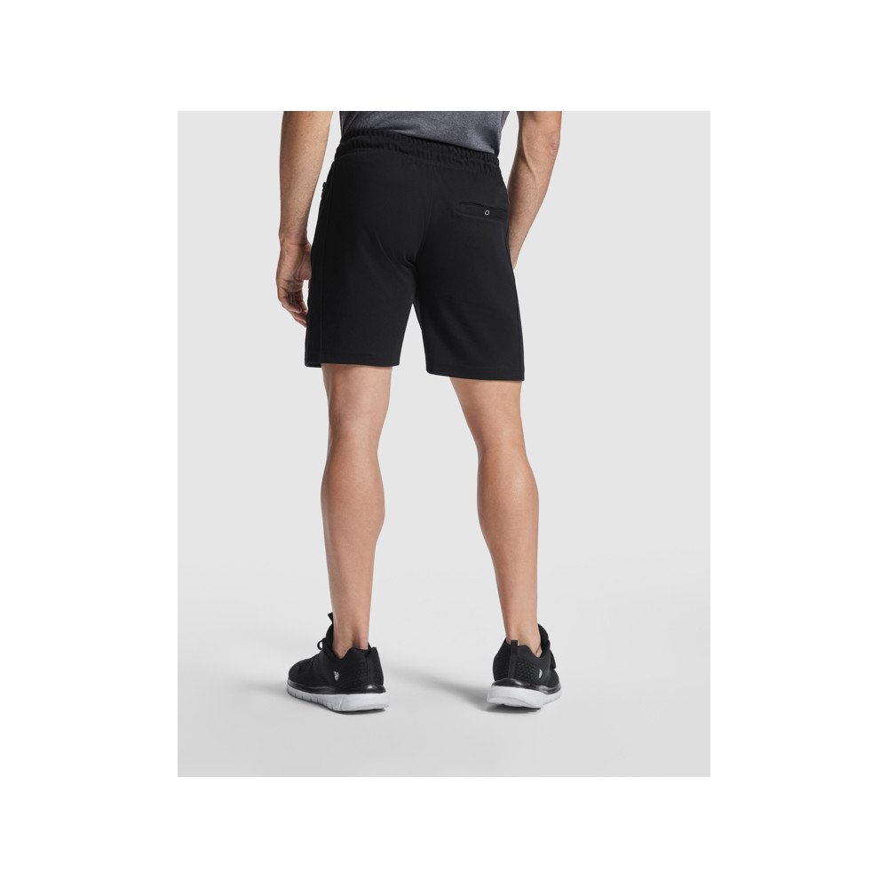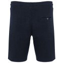Shorts with elastic waistband and drawcord with metal eyelets. Two side pockets with inverted zips and puller. Matching side band. Sewn fly adornment. One pocket on the back with snap clasp button.
