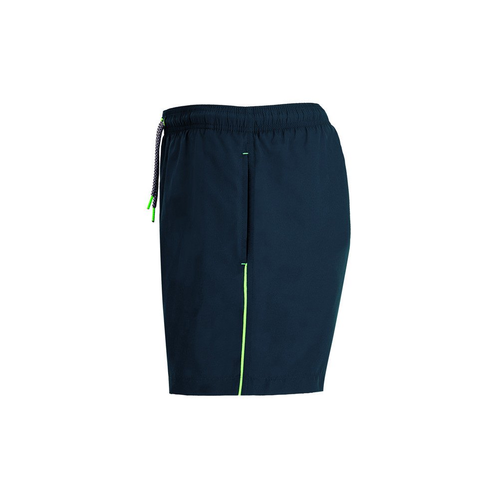 Peldbikses ar divām sānu kabatām. Elastīga vidukļa lente ar regulējamām dekoratīvām auklām un metāla cilpām. Sānu paneļi rievoti. Aizmugures kabata ar cilpu aizvēršanai.