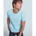 Unisekss T-krekls ar īsām piedurknēm. Apaļa divslāņu apkākle. Bez sānu vīlēm pieaugušo izmēriem un ar sānu vīlēm bērnu izmēriem.