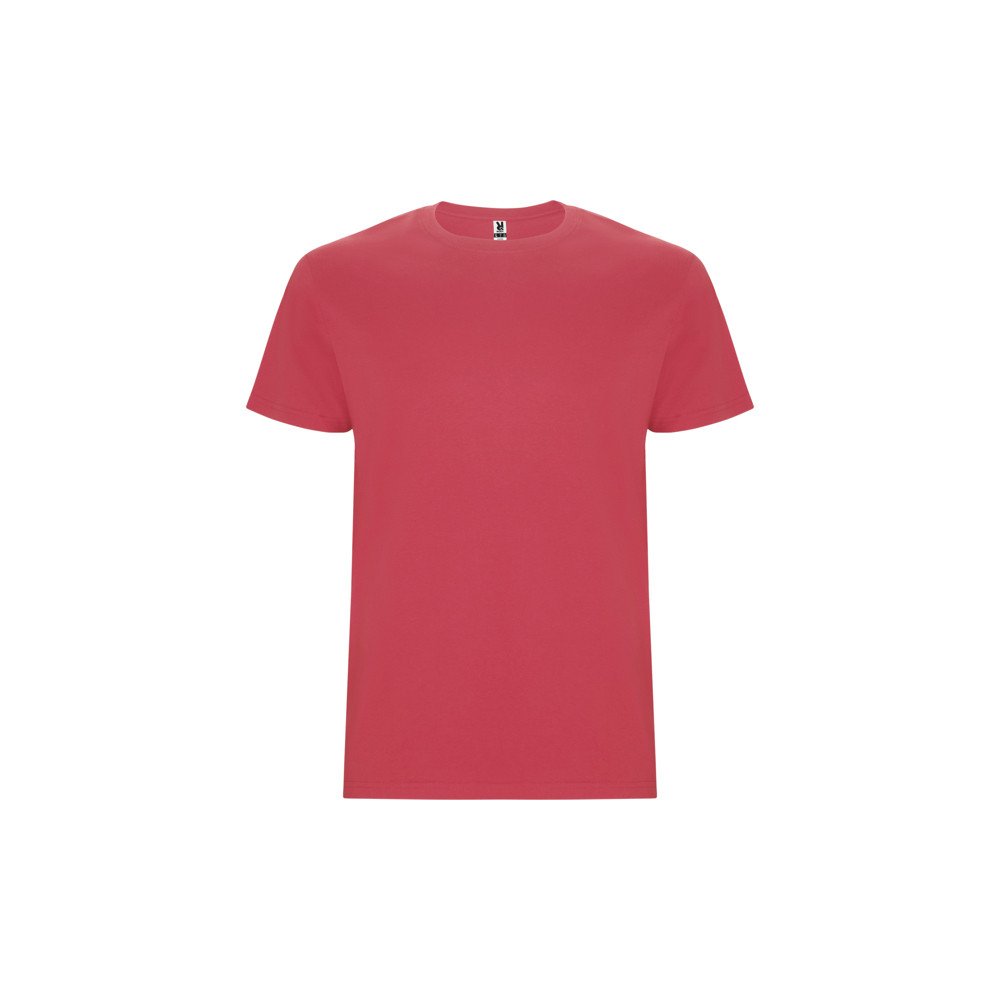 T-krekls ar īsām piedurknēm. Apaļa apkākle ar elastānu. Bez sānu vīlēm pieaugušo izmēriem un ar sānu vīlēm bērnu izmēriem.