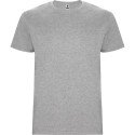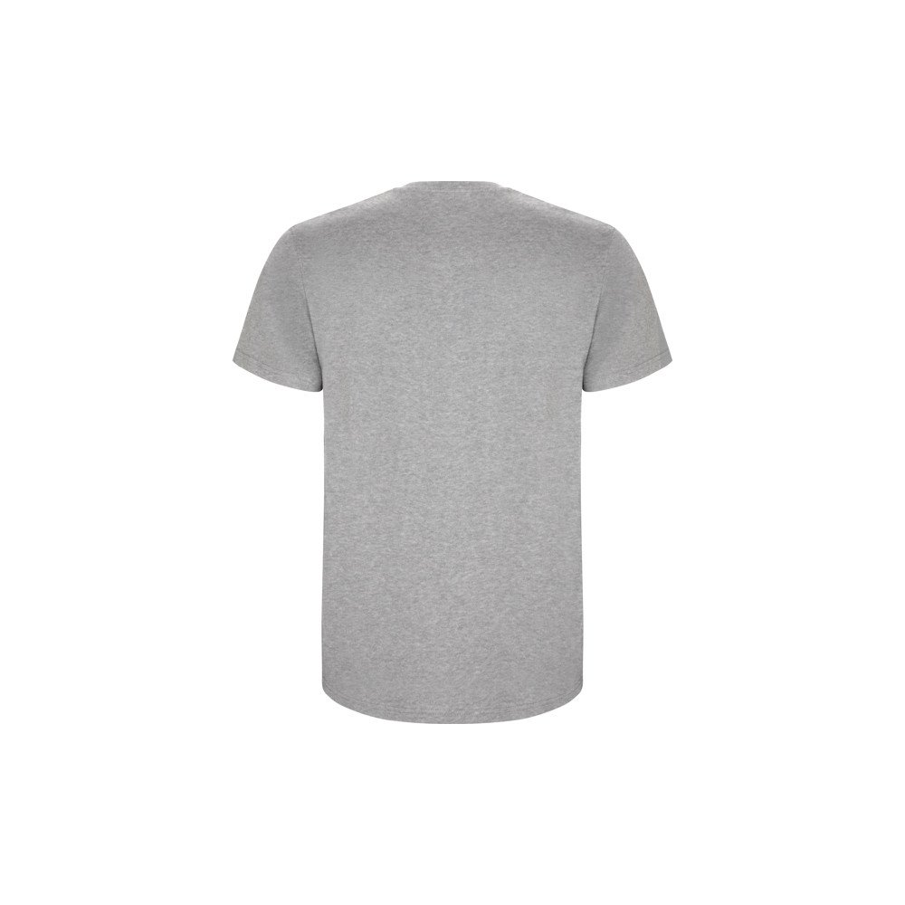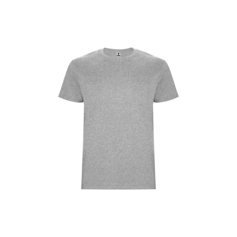 T-krekls ar īsām piedurknēm. Apaļa apkākle ar elastānu. Bez sānu vīlēm pieaugušo izmēriem un ar sānu vīlēm bērnu izmēriem.