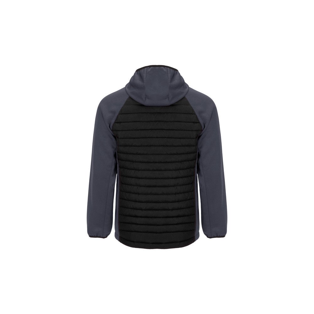 Vīriešu jaka no diviem audumiem.Kapuce.Reglāna piedurknes.Piedurknes, sāni un kapuce no ''Softshell'' auduma.Stepēts audums priekšusē un aizmugurē.Slēgtā tipa rāvējslēdzēja ar zoda aizsargu.Divas priekšējās kabatas ar rāvējslēdzēju.Elastīga apdare ap kaklu, piedurknēm un apakšmalu.